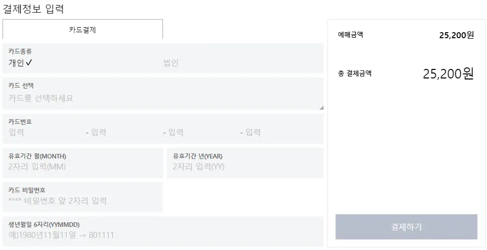 6. 결제정보를 입력하고 결제를 하면 승차권 예매가 완료됩니다.