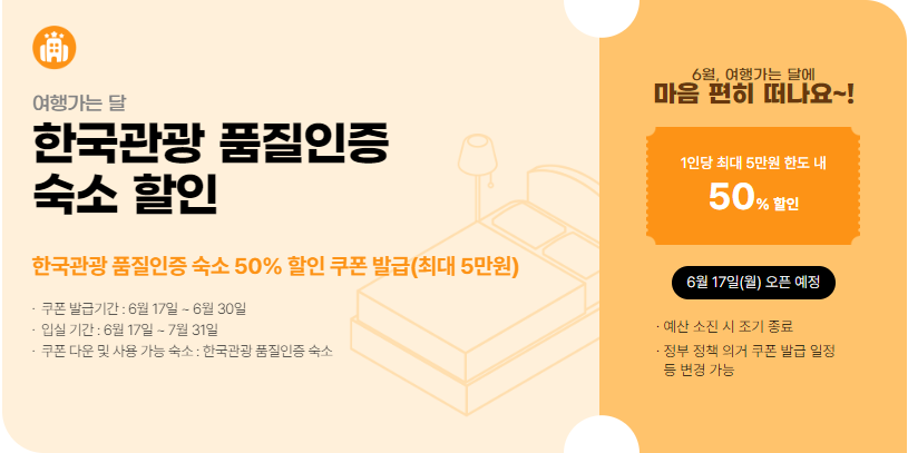 6월 여행가는 달을 맞이하여 숙박세일페스타 외도에도 다른 숙박 혜택을 제공하고 있습니다. 여행 가는 달 혜택 놓치지 마시고 아래 링크를 통해 확인해 보세요.